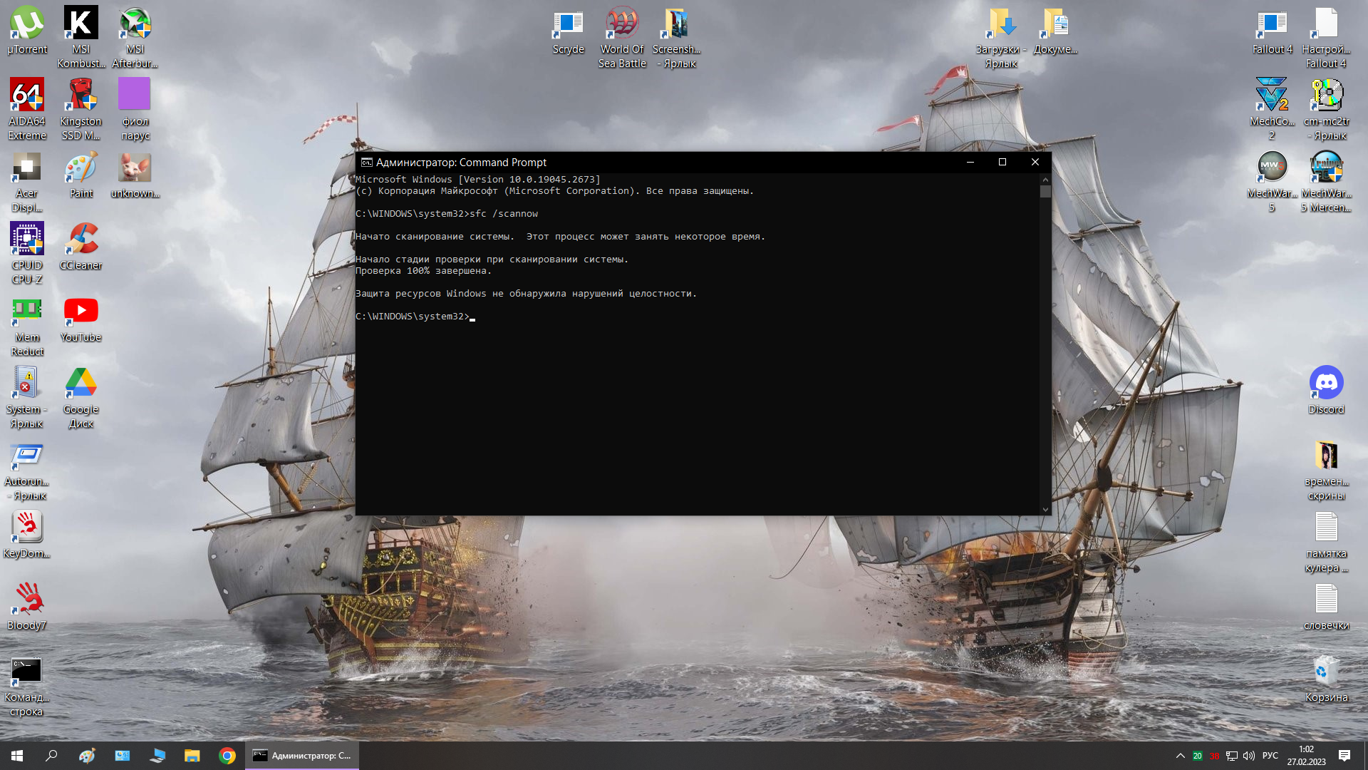unknown_2023.02.27-01.02.png Рекомендую проводить ходя бы раз в месяц проверку. Т.к тема полезная, тут на скрине всё чики-пуки. Однако было и не раз повреждённые файлы системы, просто с нихуя, после тех же обнов винды. Вот ента команда сама восстанавливает систему. И если подозреваешь что началась аритмия у компуши, после антивира следует проверить scannow