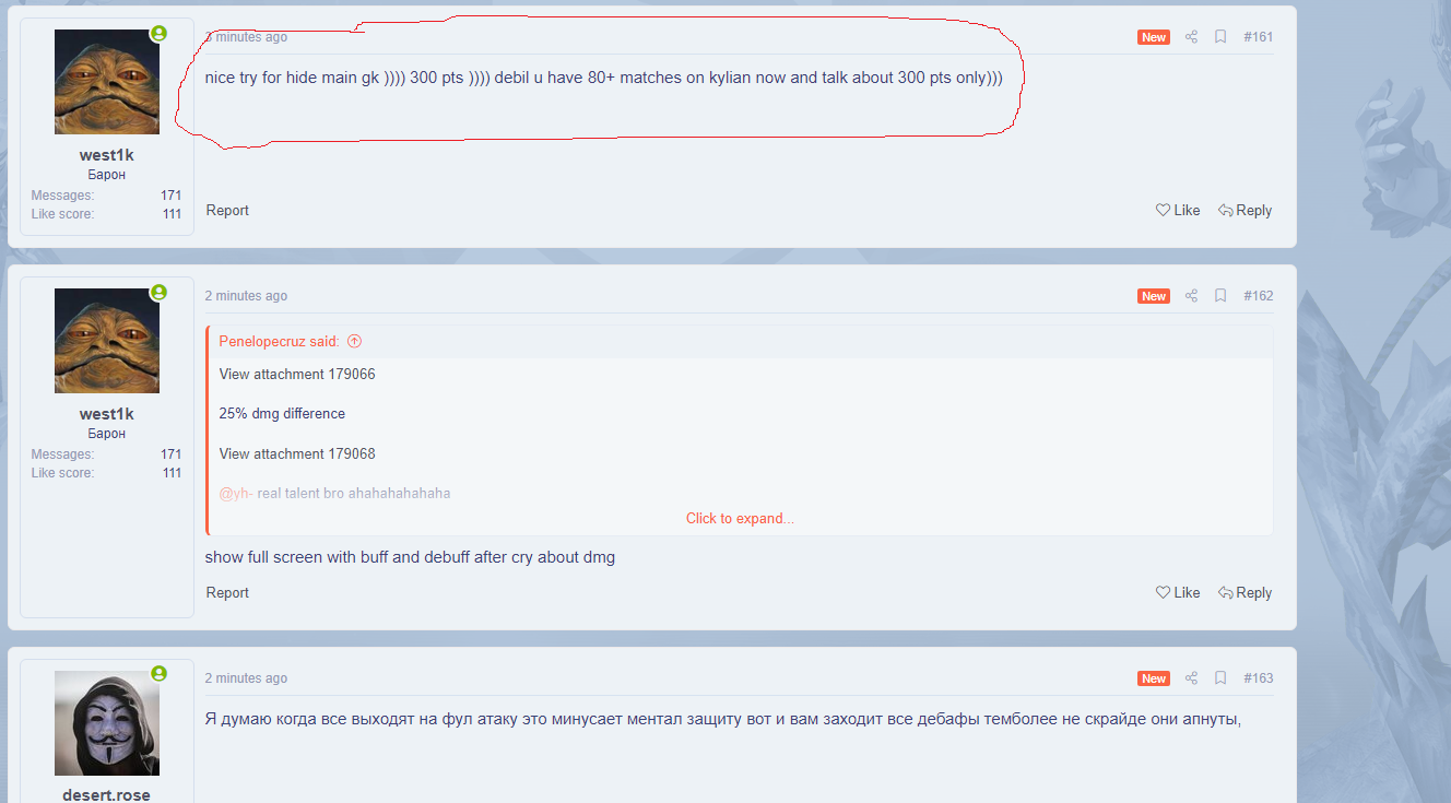 ну чел откровенно врет про 300 птс на туранте, когда я сижу с понедельника его бои считаю))) так же эта утка мажется про голден амулет, не вылезая с фортов каждый х100, создает тему мол вводите импрув валакаса и тараса скорее, но зачем? у тебя же нет денег, ты же мистер голден амулет))